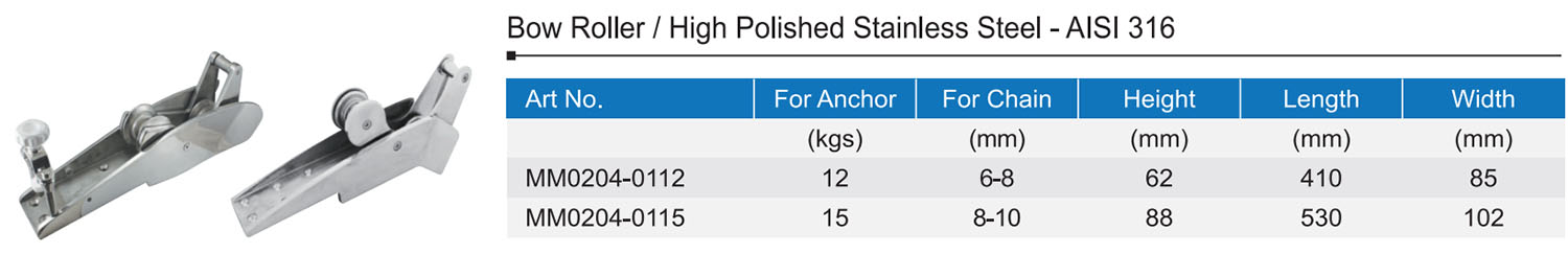 - ANCHOR, BOW ROLLER, CLEAT, CHOCK & ROD HOLDER