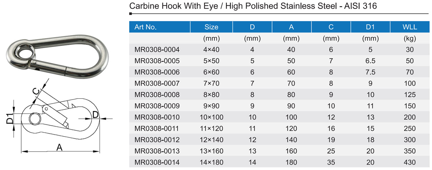 Also called: Spring Hook With Eyelet, Spring Hook With Eye, Spring Hook With Thimble, Snap Hook With Eye, Carabiner Snap Hook With Eye, etc.