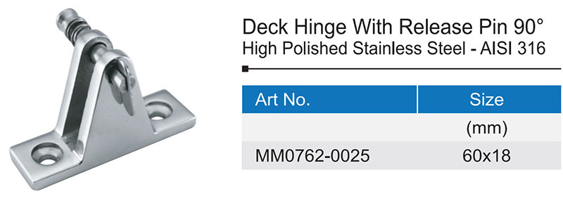 Also called: Canopy Deck Hinge W/Removable Pin, Bimini Deck Hinge And Removable Pin With Spring.