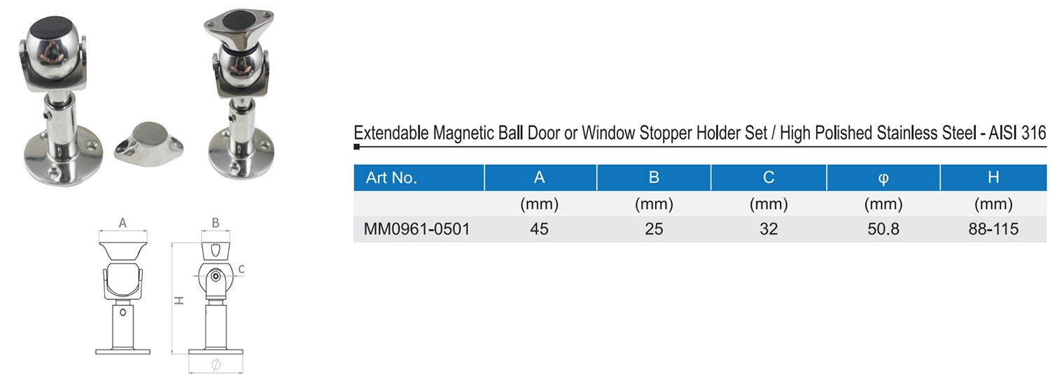 Extendable Magnetic Ball Door or Window Stopper Holder Set