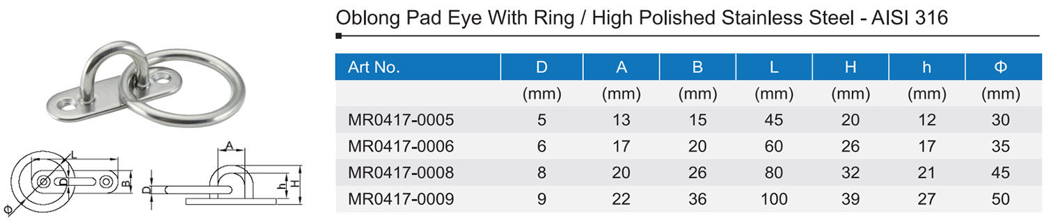 Also called: oval plate with ring, oblong pad with ring, oblong eye plate with ring.