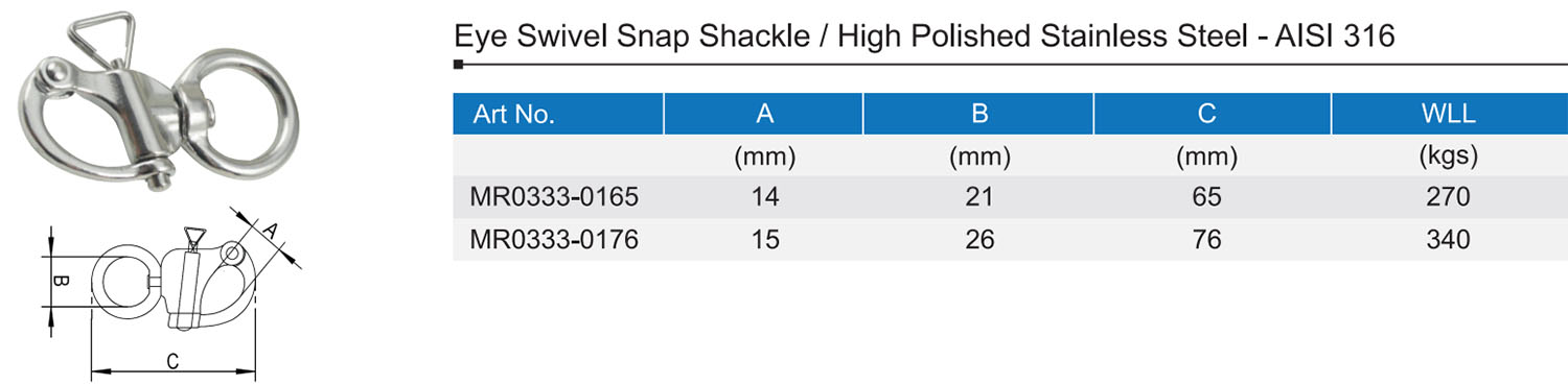 Also called: tylaska trigger shackle, trigger snap with eye bail, quick release snap shackle.