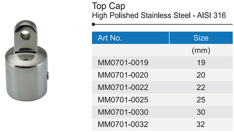 Also called: Canopy Top Cap, Stanchion Eye Cap, Canopy Bow End, Bimini Eye End Cap.